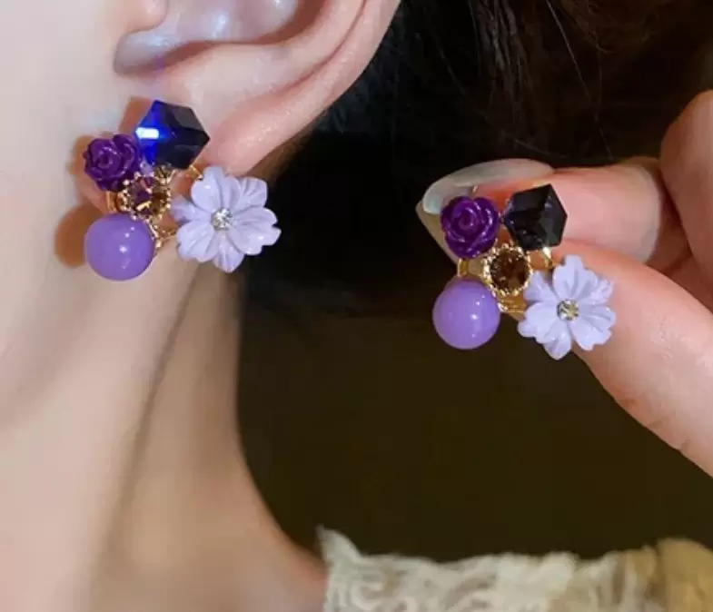ARETES FLOR Y CUBO LILA
