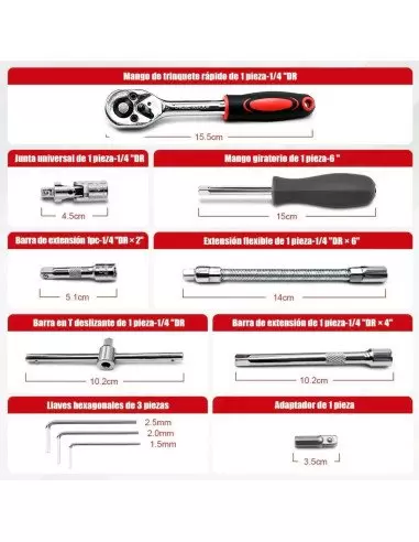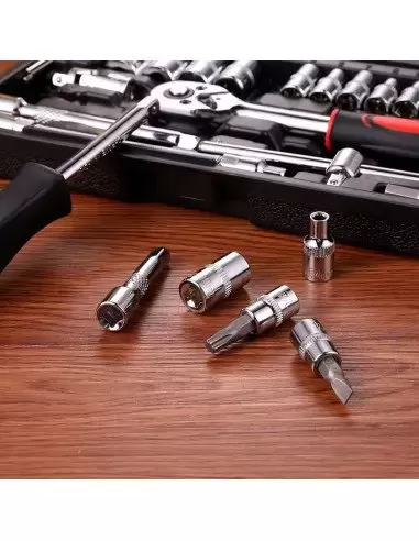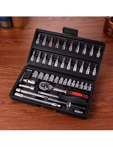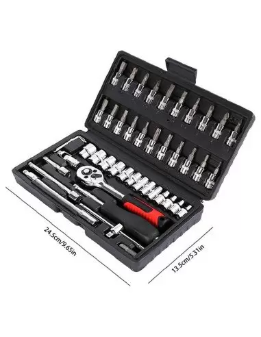 JUEGO DE DADOS Y LLAVES DE MATRACA PROFESIONAL 46 PIEZAS | KIT MECÁNICO MULTIUSOS