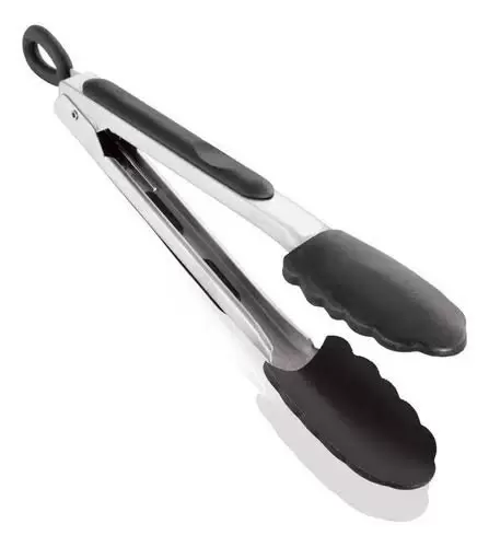 PINZAS DE COCINA CON PUNTA DE SILICONA NEGRO